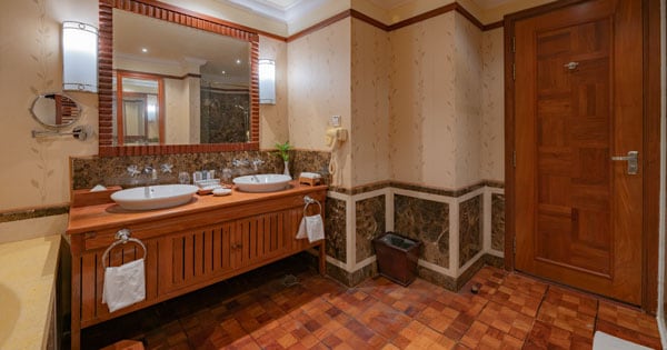 | Royal Sokha Suite | Swimming Pool View with private balconies | 1 | 320 sqm | 5th Floor | Two Hollywood Beds | Separate shower stall and bathtub, Jaccuzi and steam room | Hollywood Bed: 4 Adults and 2 Children under 5 years old | The largest and most dramatically situated suites of the hotel with separate living areas, magnificent terraces with full view of swimming pool equipped with table and chairs. The Suite is designed for luxury comfort with a formal lobby entrance, a spacious and comfort living hall, dining room with access to a private kitchen, massage and steam room. One master bedroom and second bedroom features a king-size bed. |