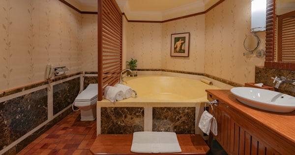 | Club Suite | Swimming Poolv View with Private Balcony | 24 | 60 sqm | 4th Floor | One Hollywood or King Bed | Separate shower stall and large circular bathtub | Hollywood/King Bed: 2 Adults and 2 Children under 5 years old | Cable color television, individual air conditioning, in-house telephone, Wi-Fi, DVD player, Mini Bar, a kettle with complimentary coffee and tea-making facilities, mini-bar and personal safety box. |